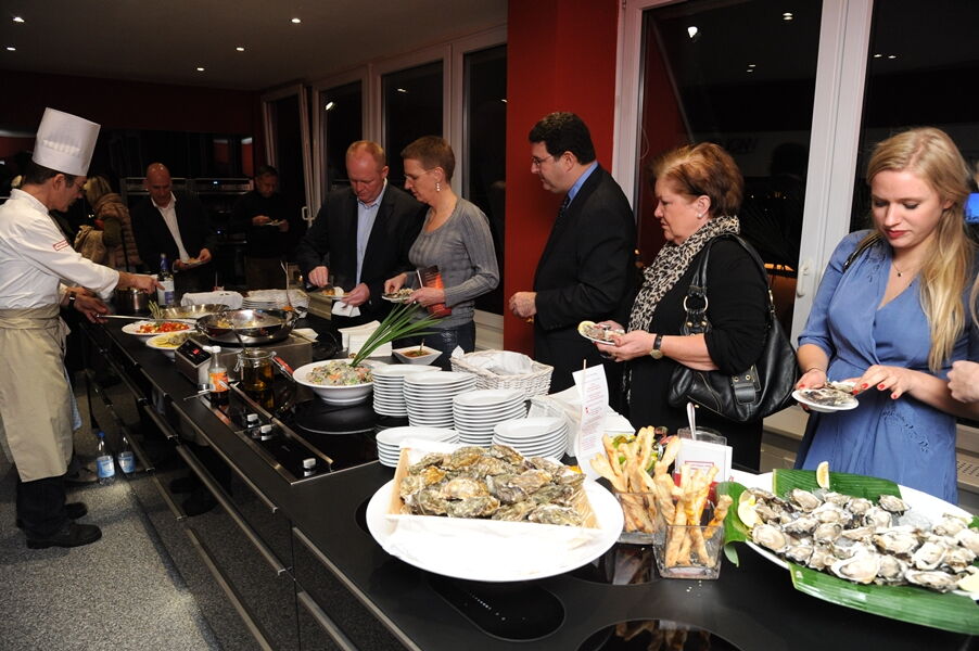 Unsere Gäste freuten sich auf Austern und Champagner, Live-Cooking und persönlich gezeichnete Karikaturen von Arnd Hawlina.
