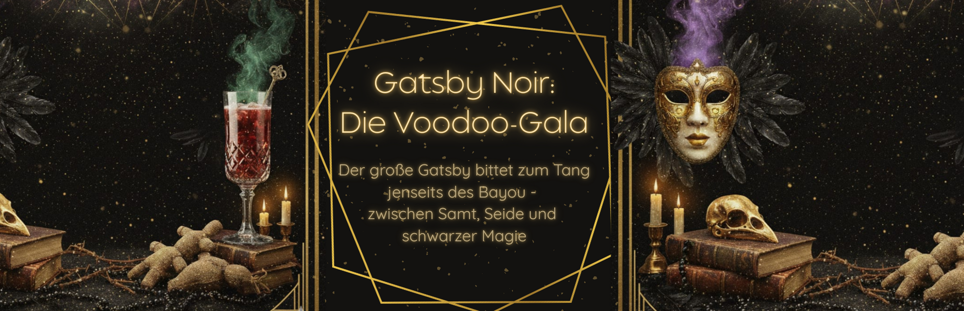 wir laden Sie ein zu einer Nacht, in der die Grenzen zwischen Glanz und Grauen verschwimmen, wo die dekadenten Klänge der Roaring Twenties auf den geheimnisvollen Puls von New Orleans treffen. Tauchen Sie ein in eine Welt voller verbotener Genüsse und uralter Flüche.