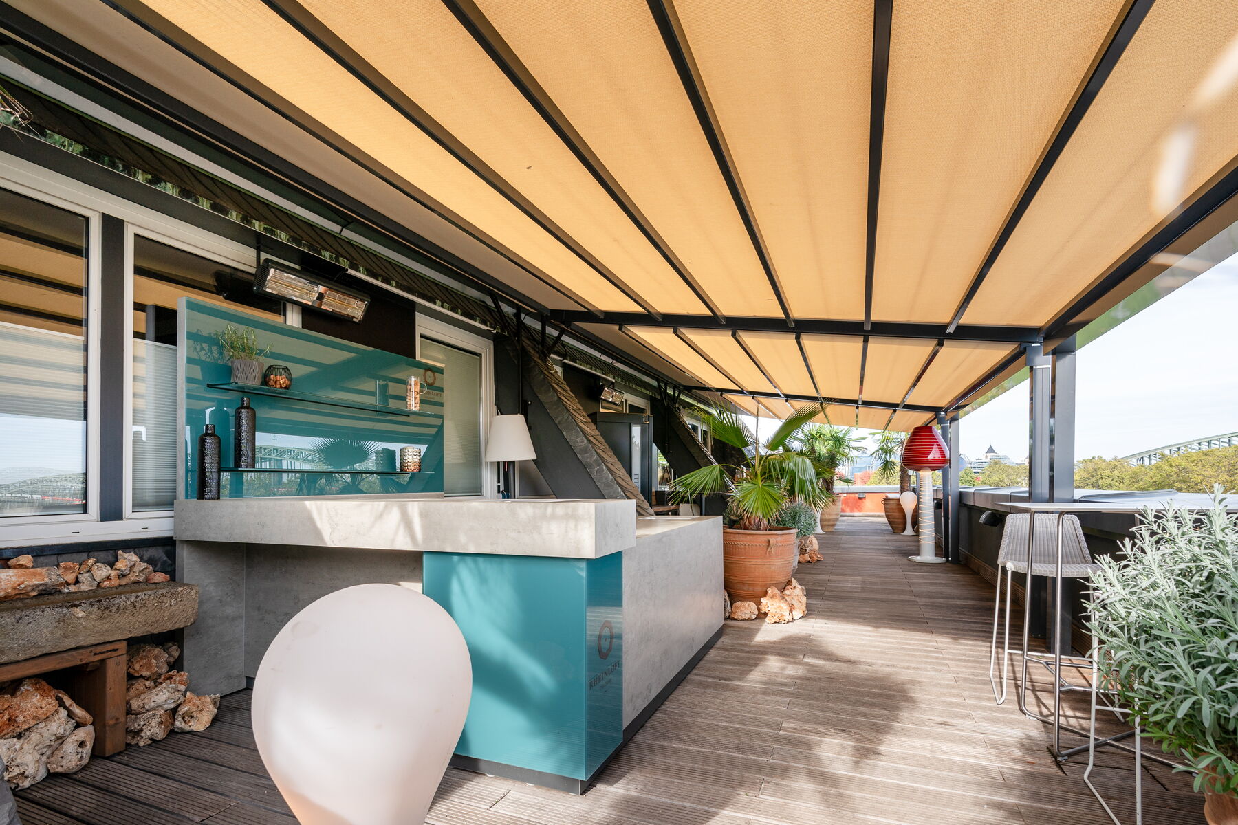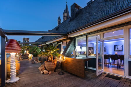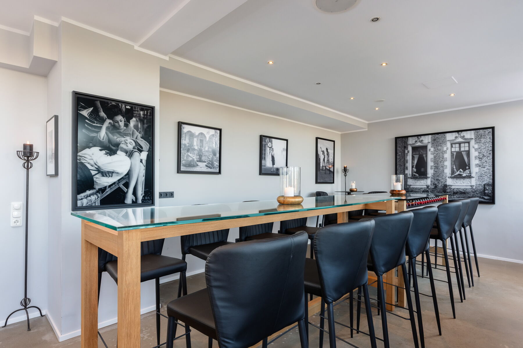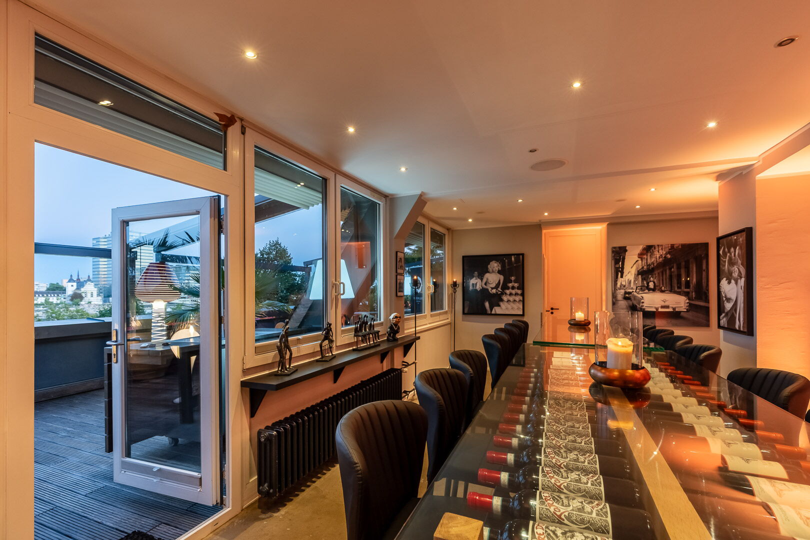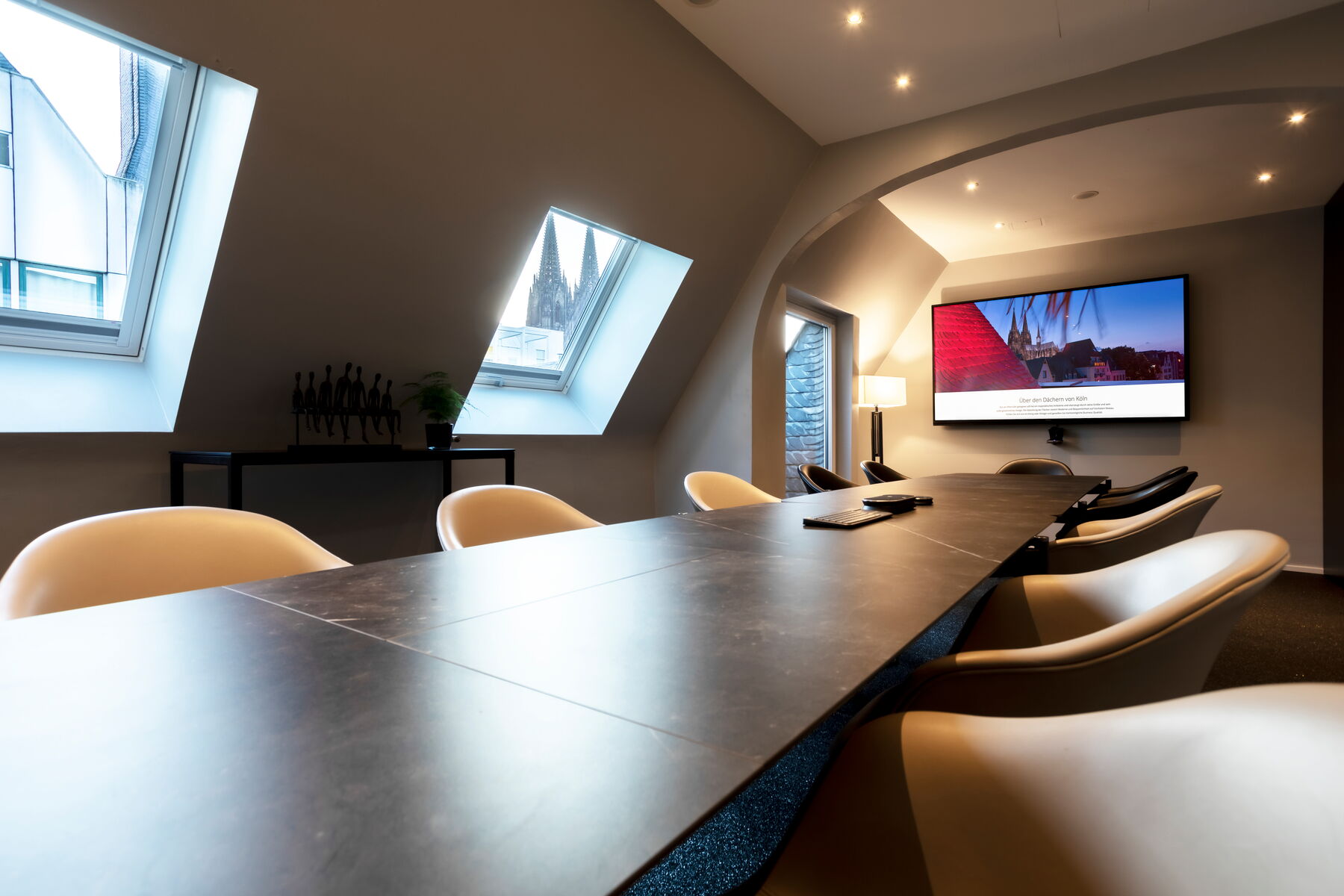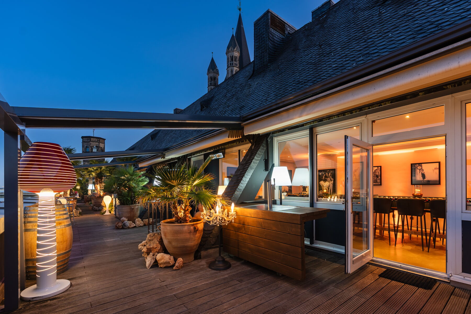 Privater Rückzugsort mit Ausblick: Das Penthouse im Rheinloft Cologne vereint Meeting- & Dining Room, Genusslounge und direkten Zugang zum überdachten, beheizten Rooftop mit Domblick und Outdoor-Bar. Ideal für Business, Private Dinners oder kulinarische Tastings im exklusiven Rahmen.
